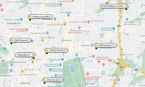 iPark Atocha 70 - iPark Princesa 25 - iPark Verdaguer y García - Parking Goya 115 - Parking Barco 1 - Parking Cercedilla 3 - Parking Juan de Austria Ballesol - Parking Gravina 21